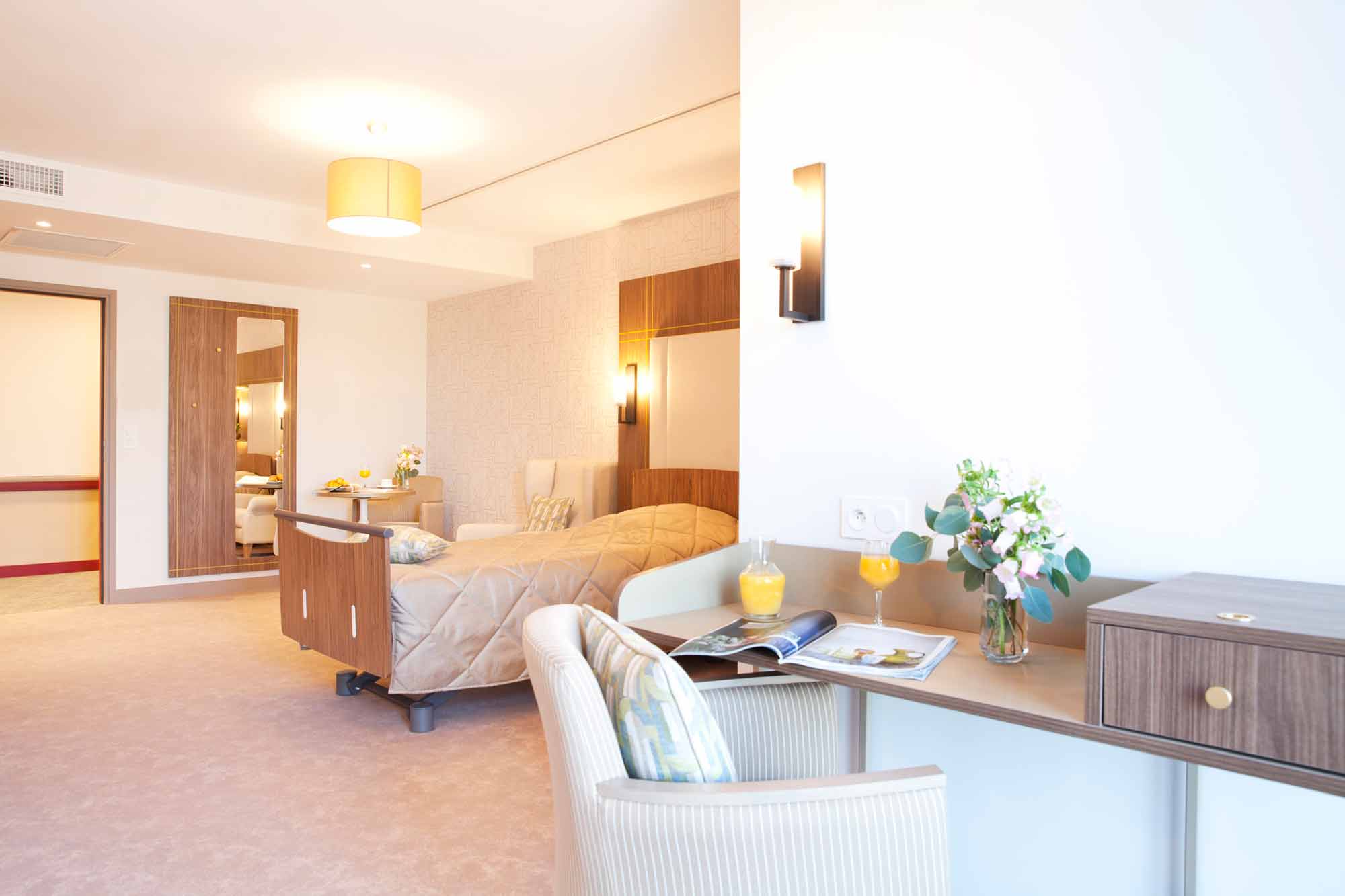 Chaque chambre individuelle a été pensée pour offrir confort, intimité et sécurité . Nos lieux de vie intérieurs et extérieurs, sont quant à eux nombreux et permettent d'offrir un cadre et des services divers à nos résidents : espaces de détente (salle de balnéothérapie), salon de coiffure et d'esthétique, espace de jeux de société, espace lecture, espace télévision, une grande salle de restauration, espaces pour recevoir les proches (salon des familles), PASA, terrasses, jardins ...
